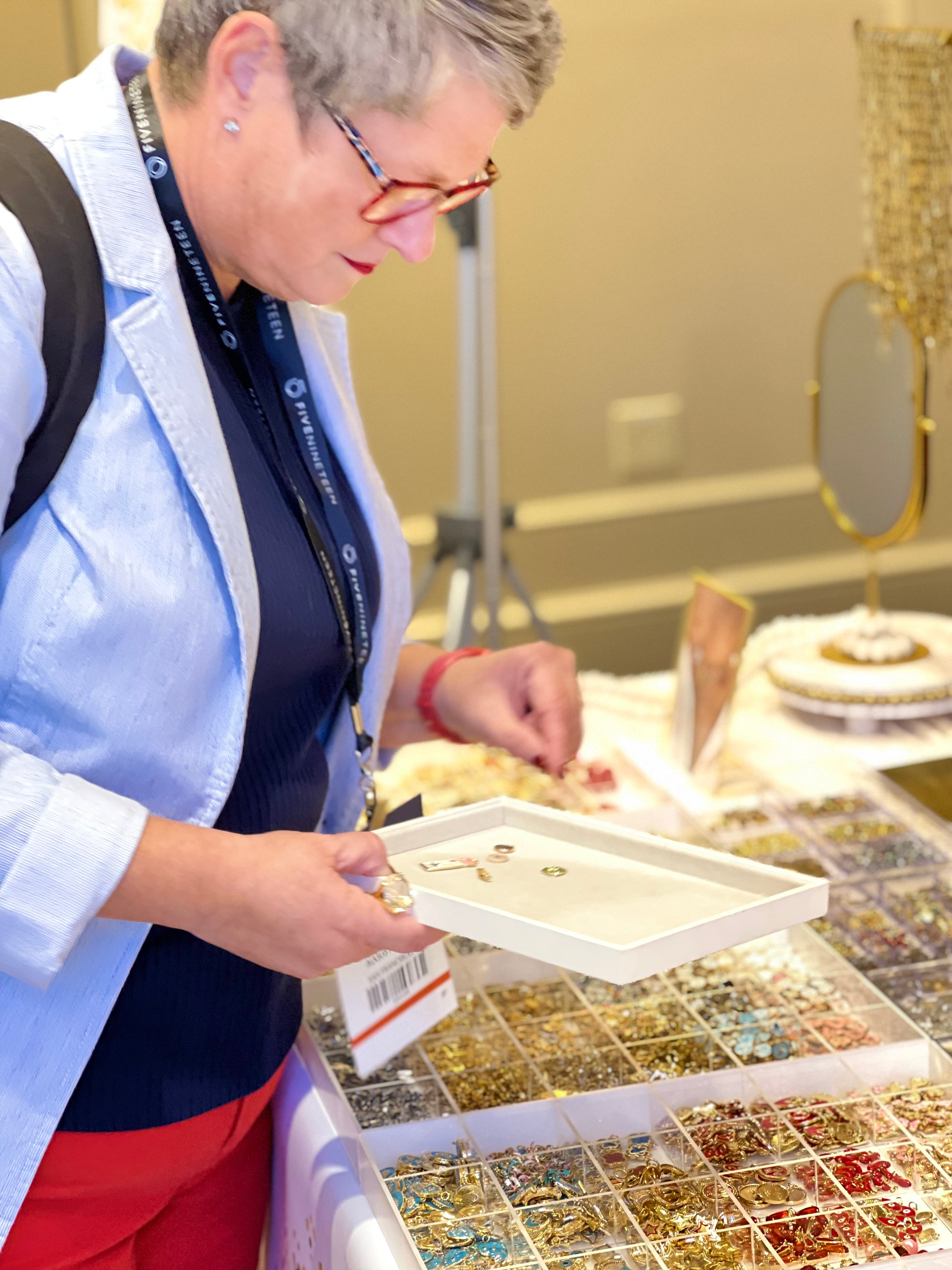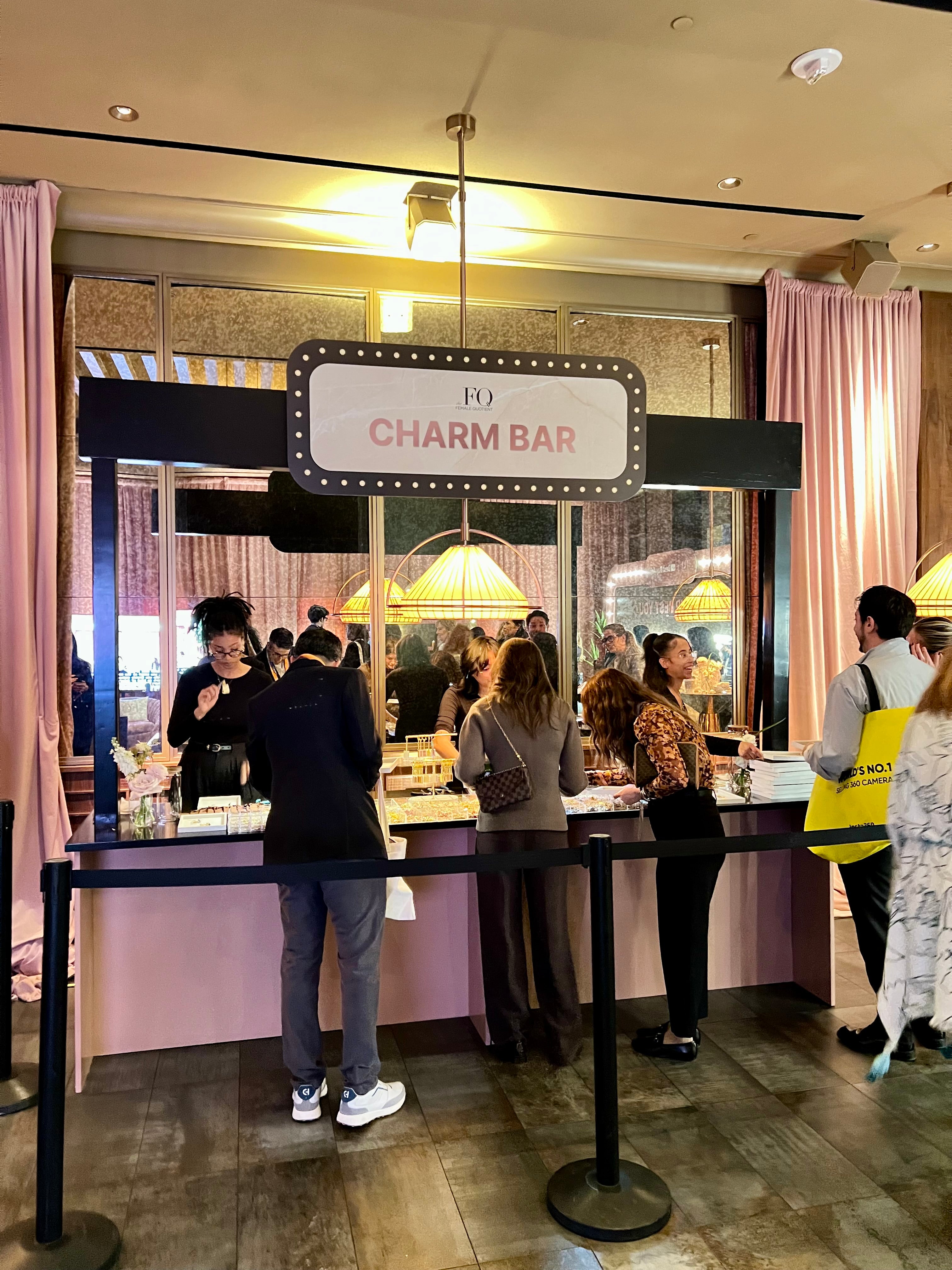 • Charm bar setup with various charms on a table in a public area in. las vegas
