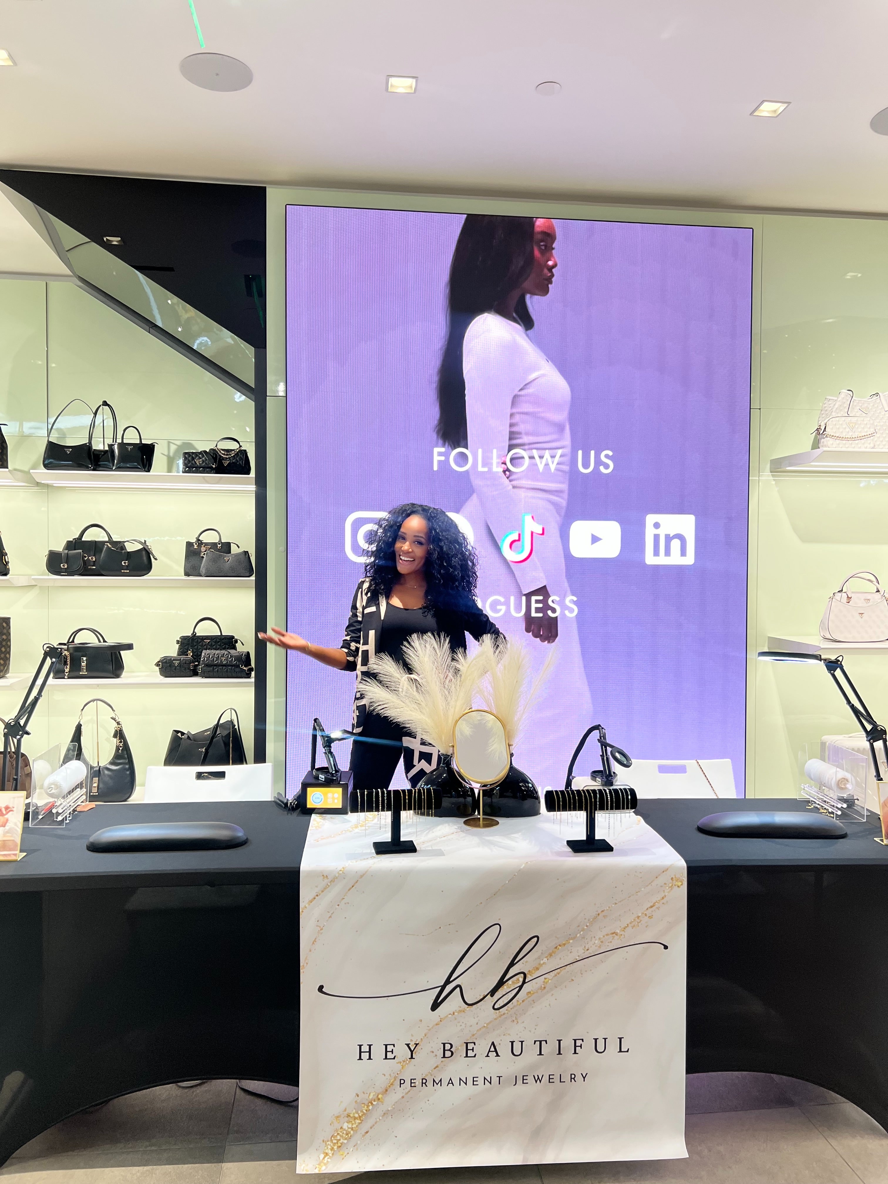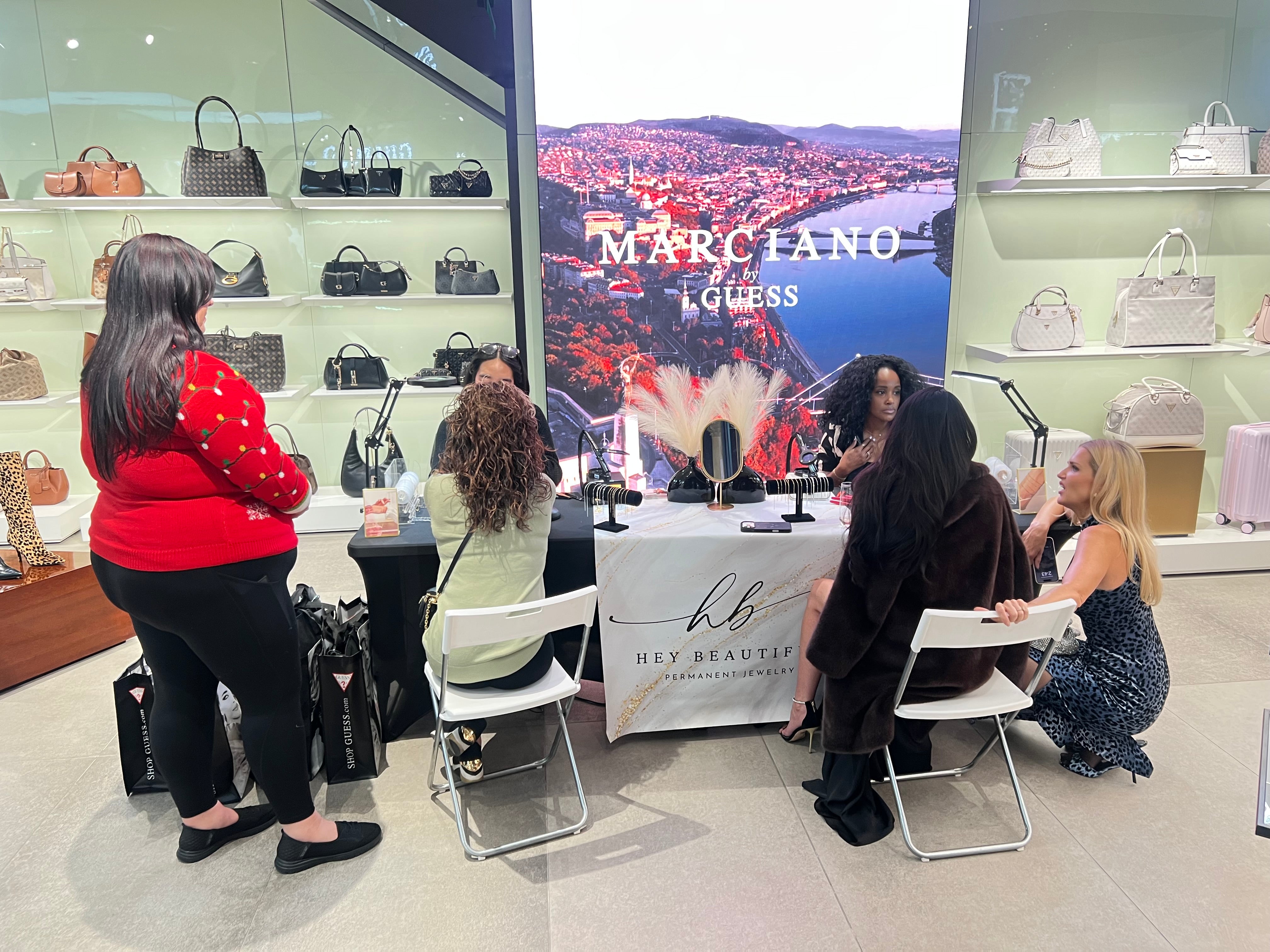 A guest appreciation activation at the GUESS store in Las Vegas, offering on-site permanent jewelry with a complimentary bracelet for guests spending $150 or more.