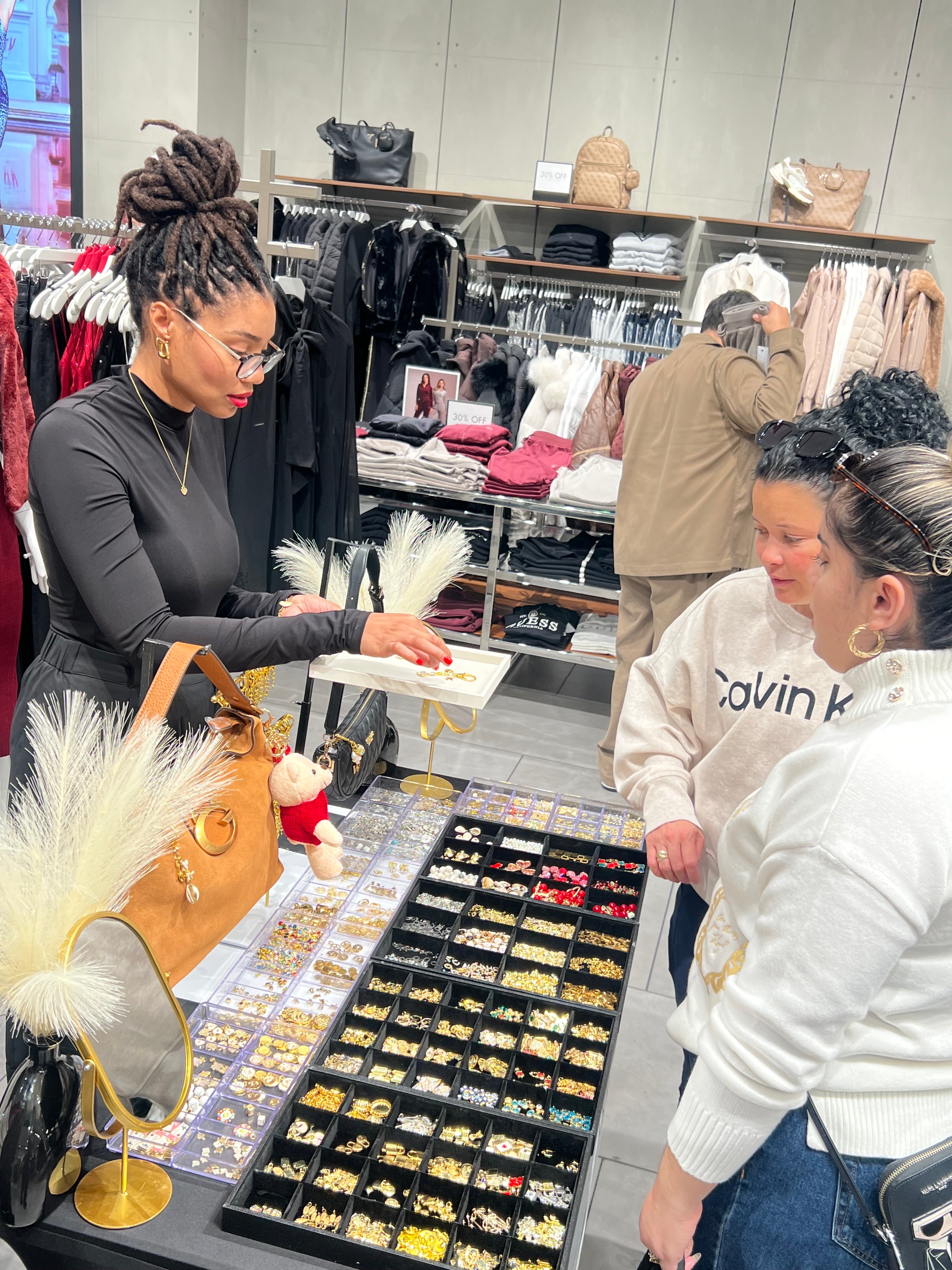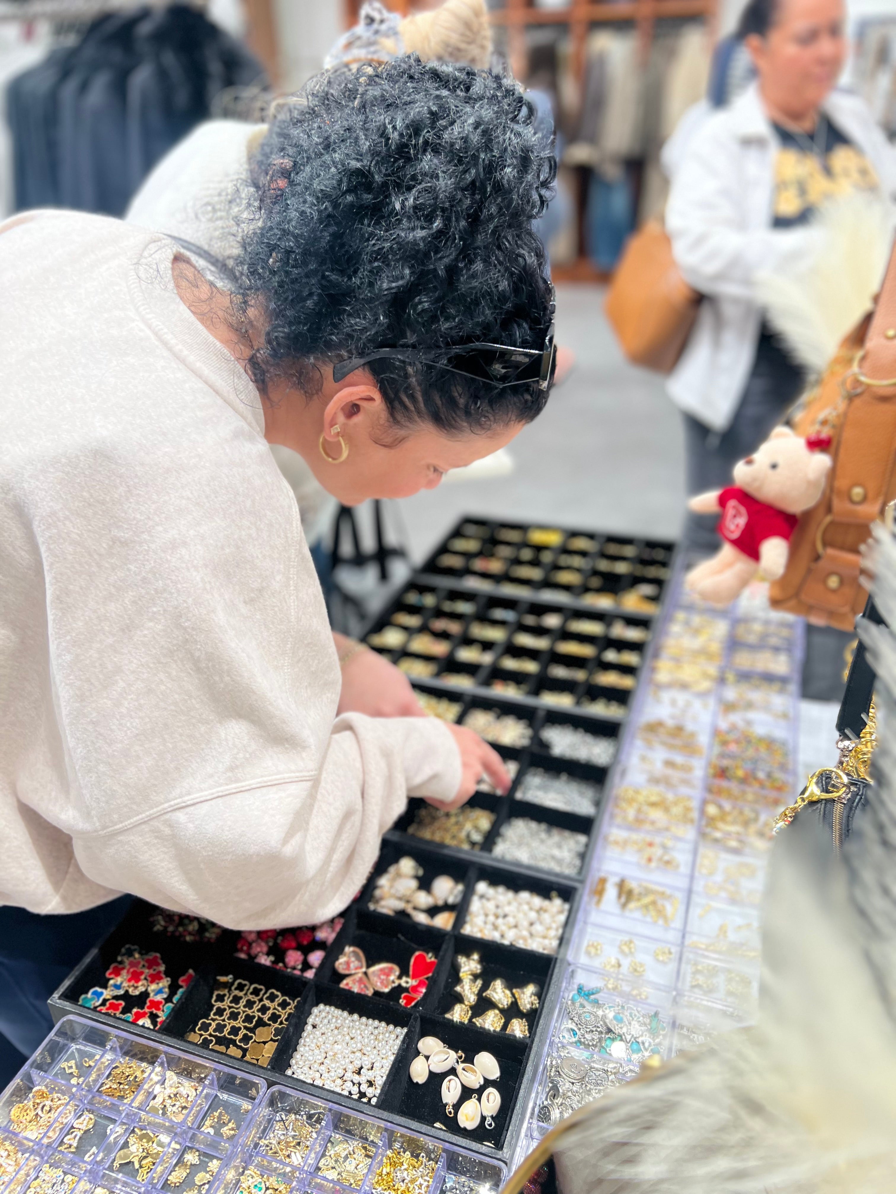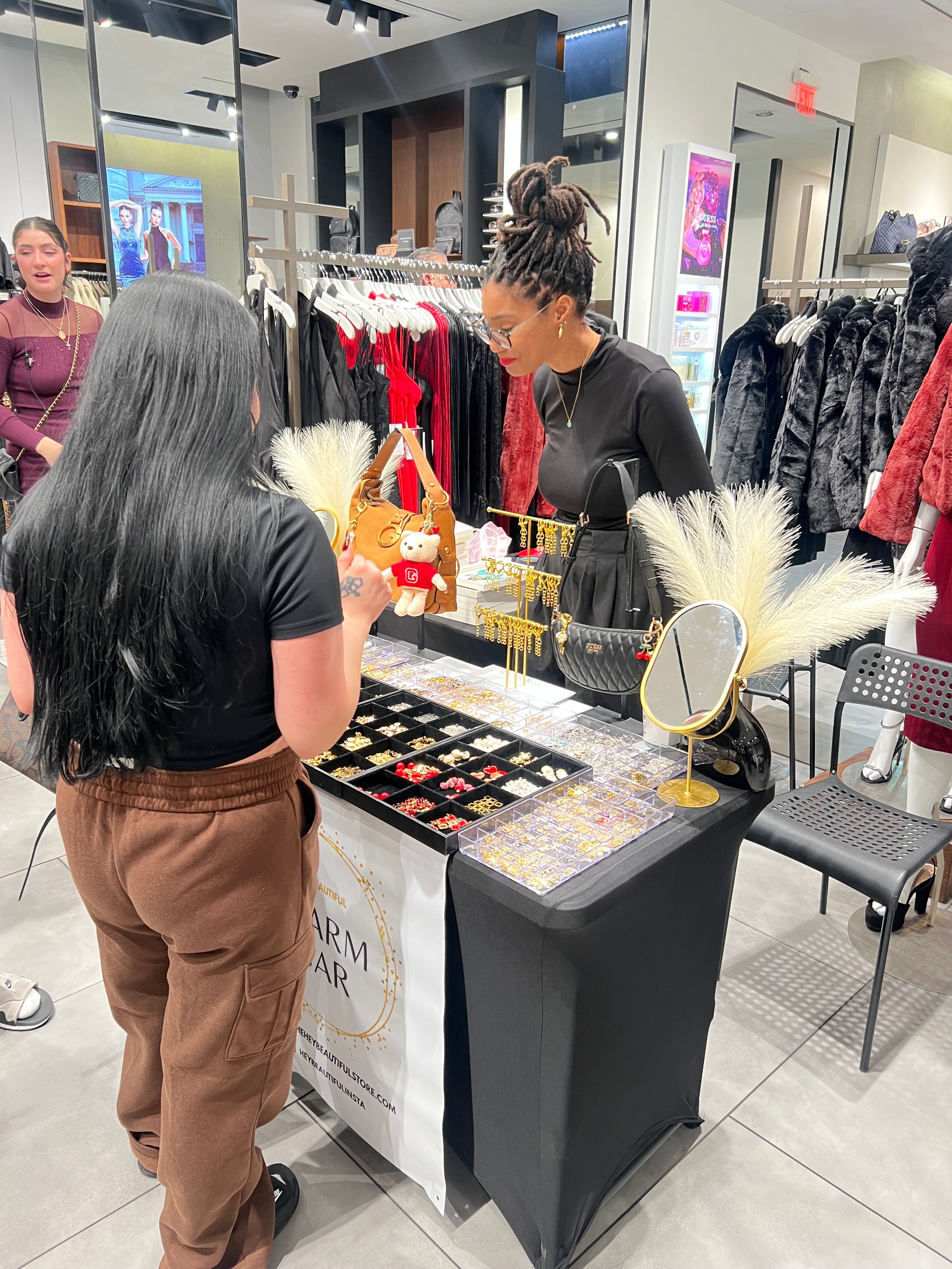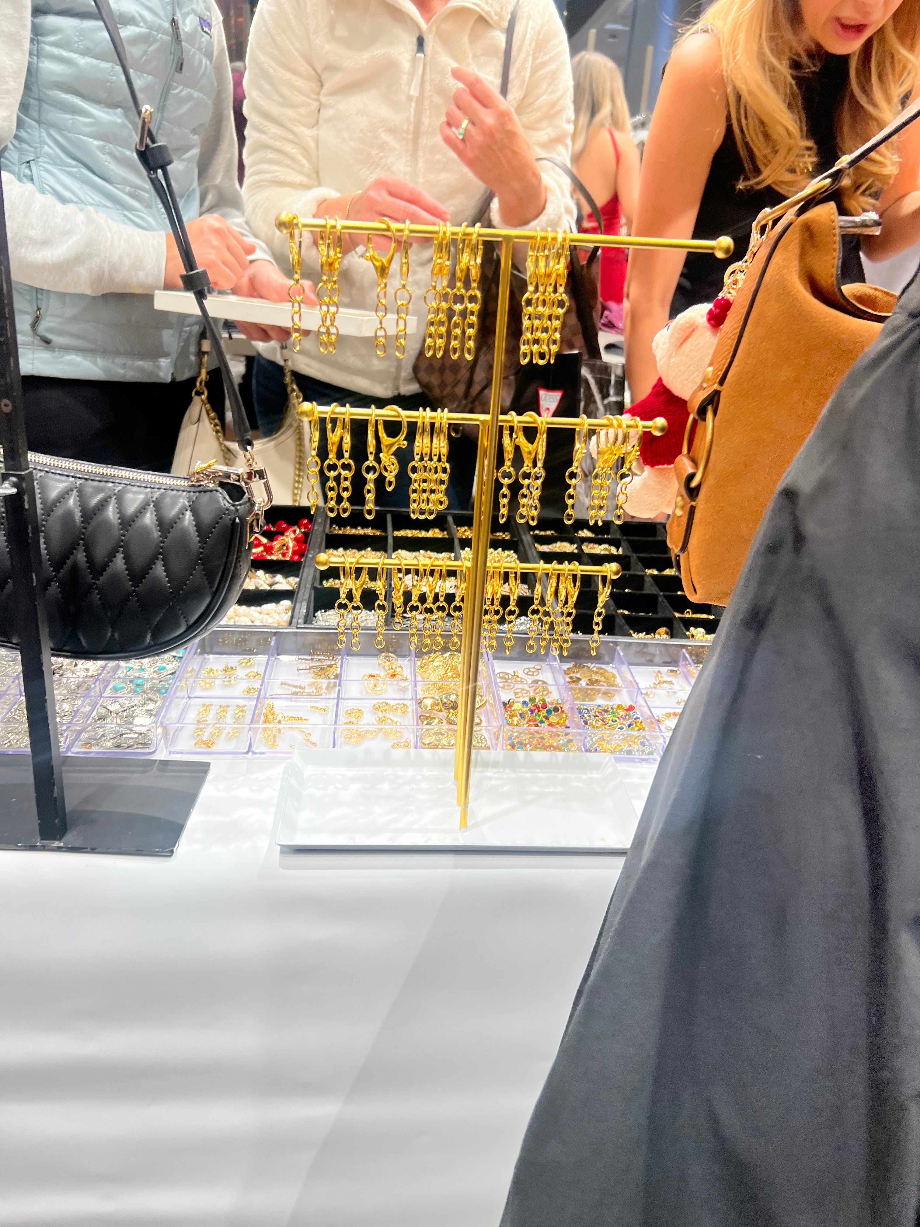 A charm bar activation for a GUESS guest appreciation event, offering complimentary custom charms with qualifying purchases of $150 or more.