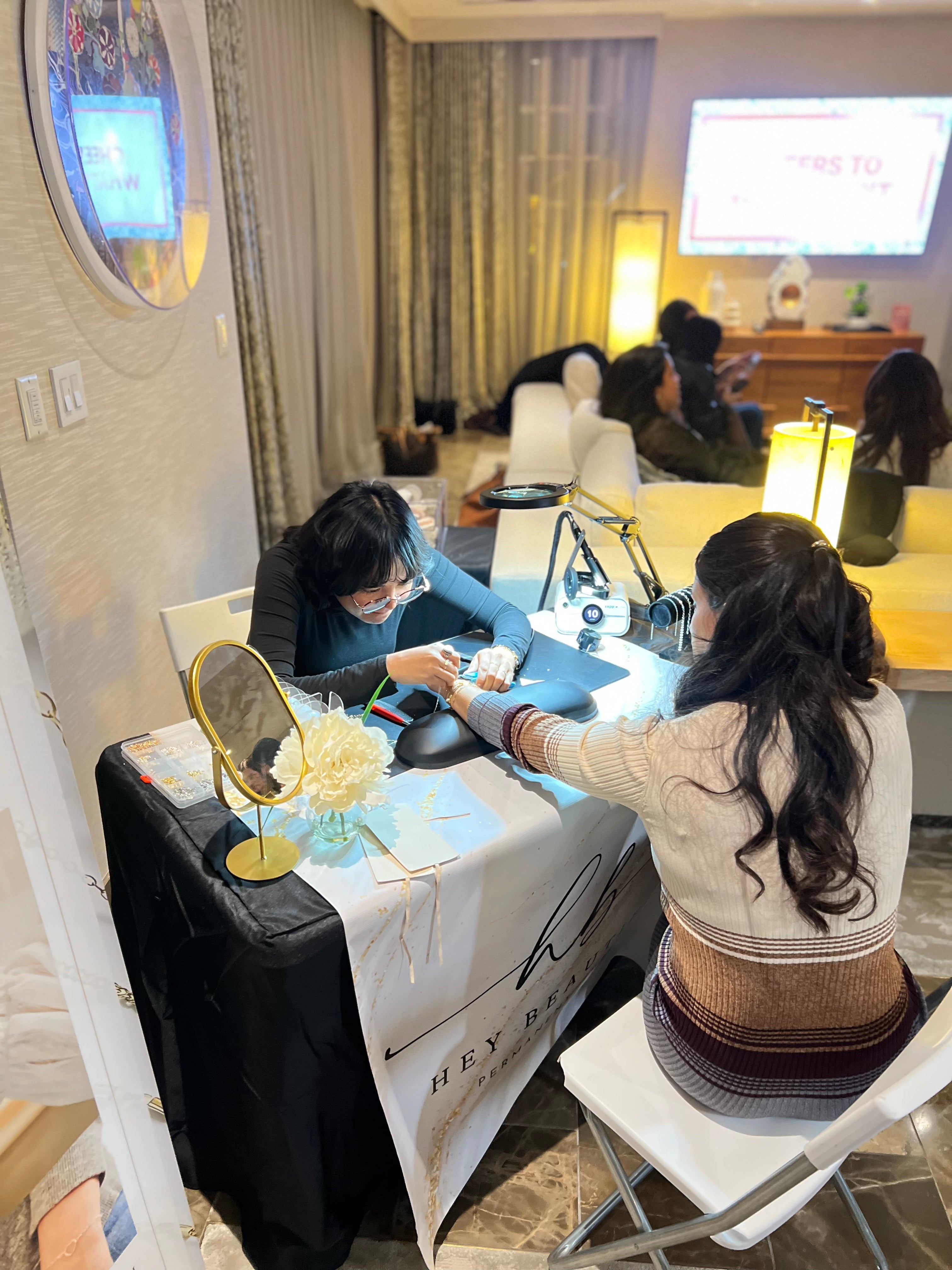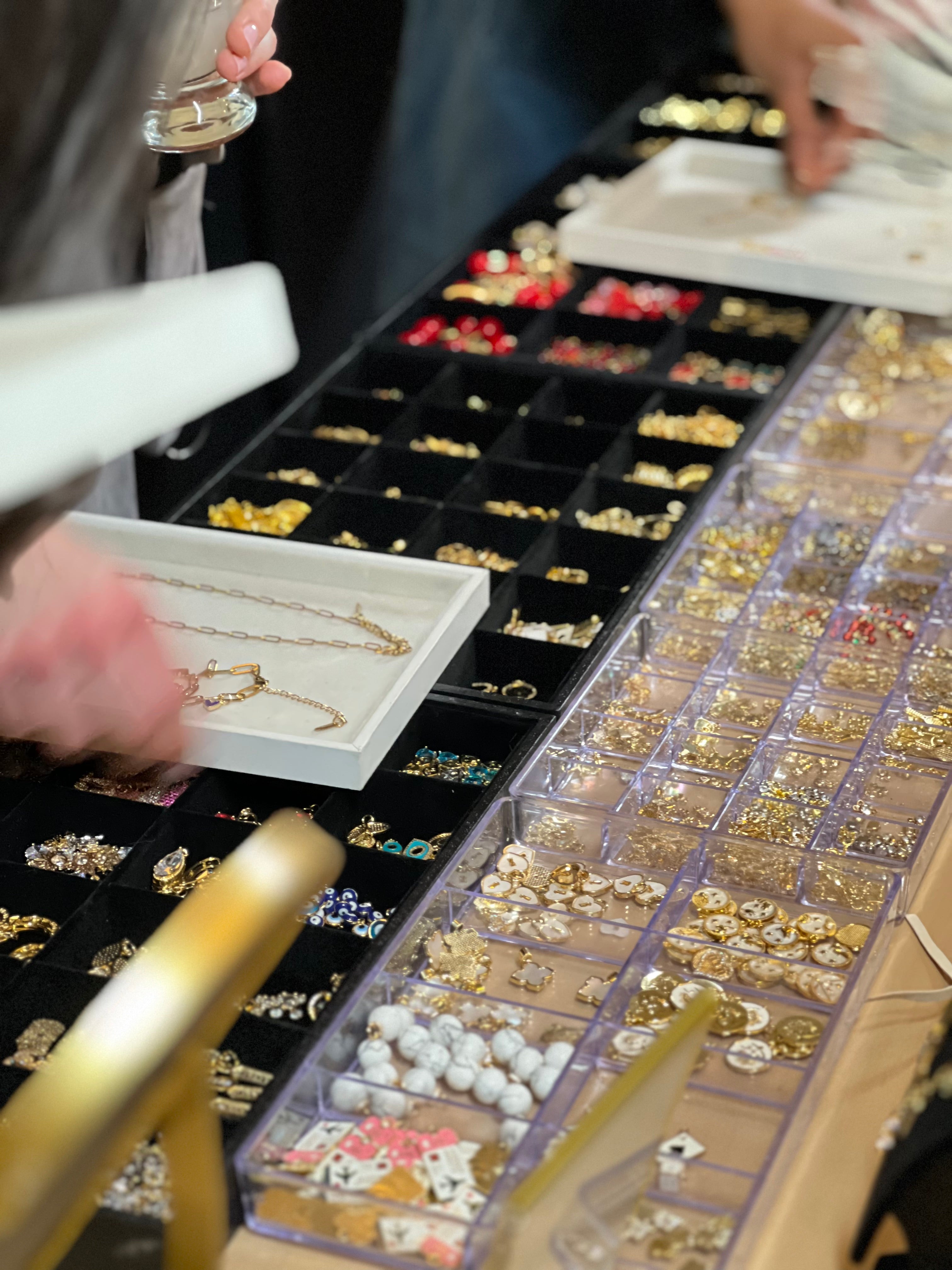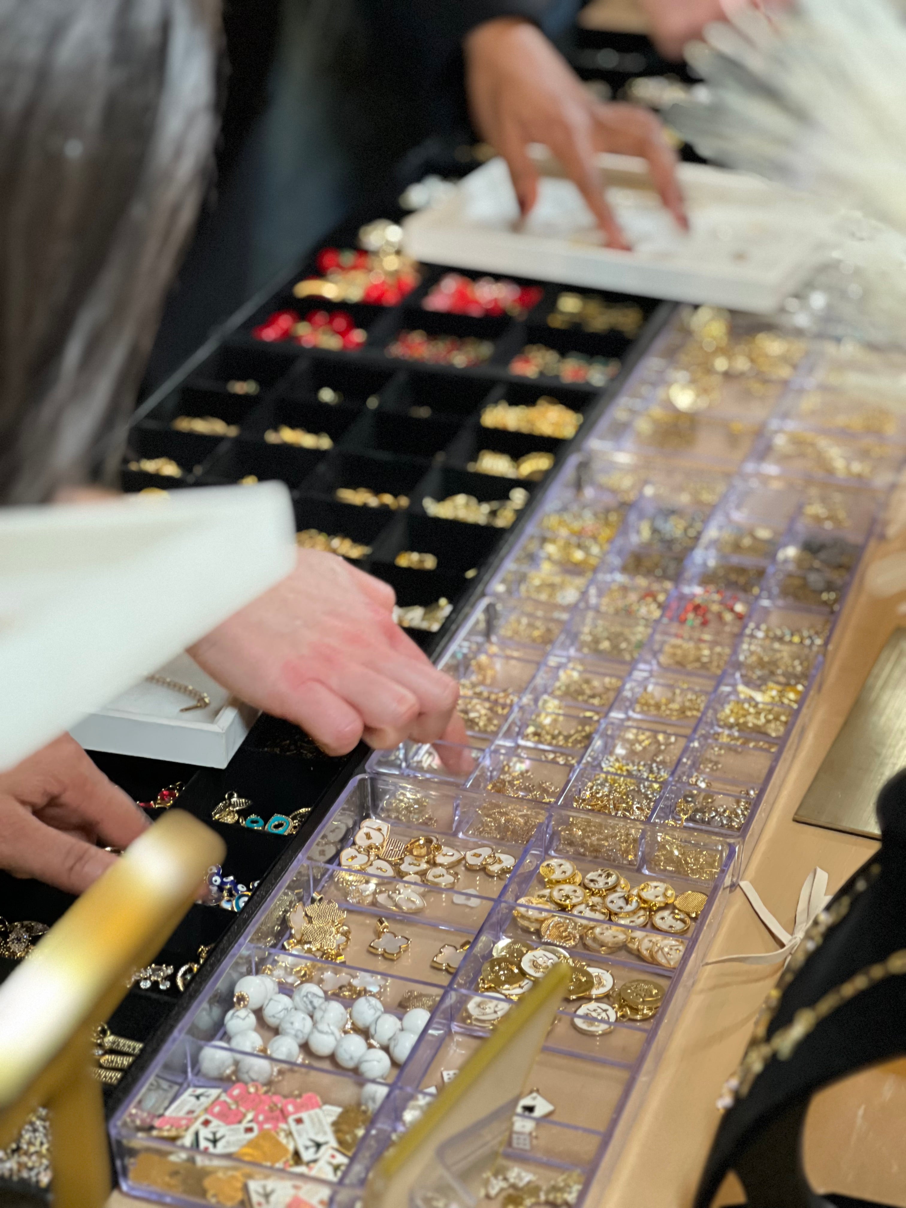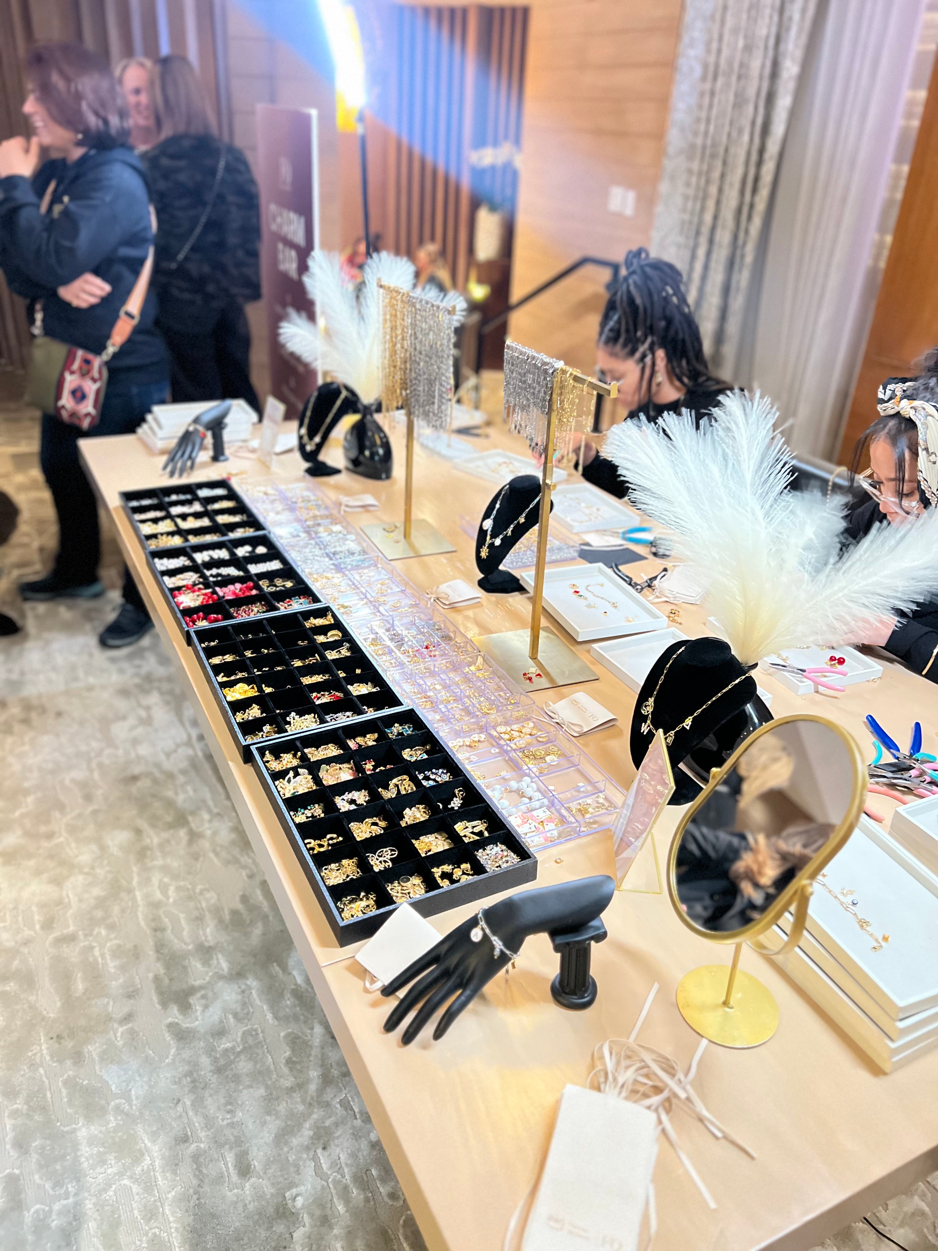 A premium lounge activation inside a private suite partnered with Amazon Web Services, featuring a charm bar and on-site permanent jewelry experience for guests.