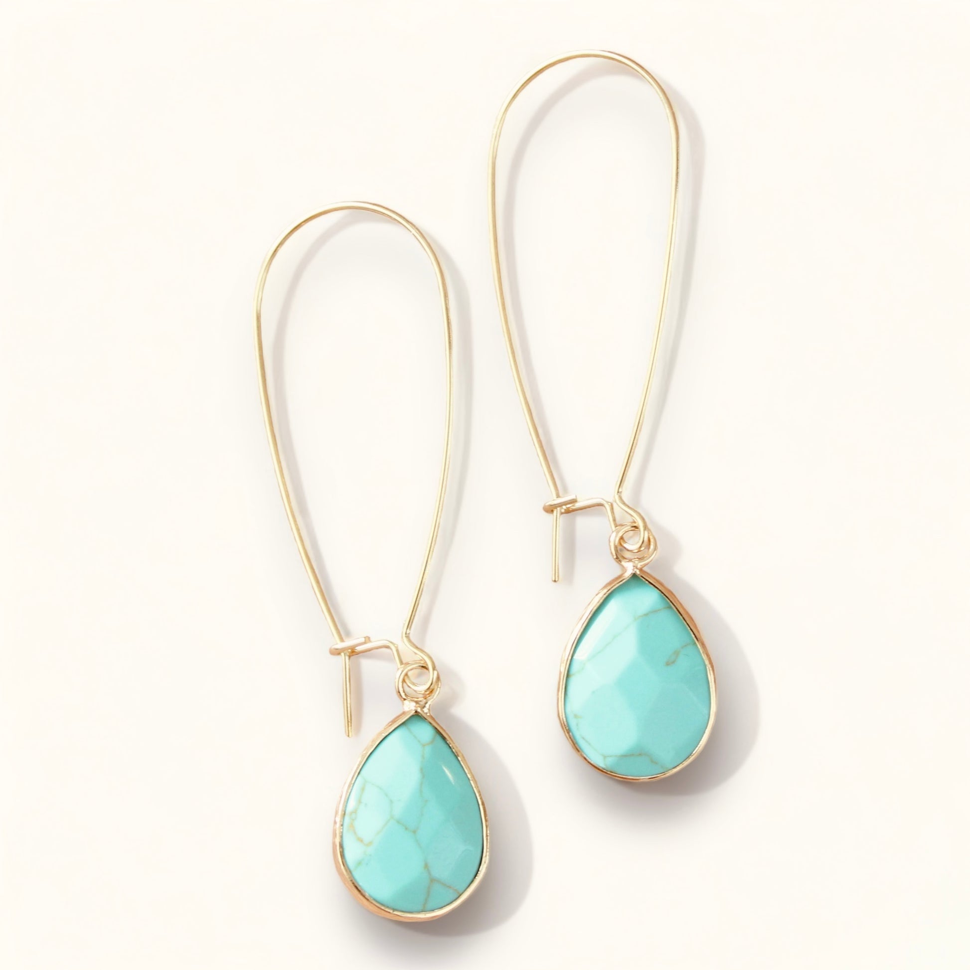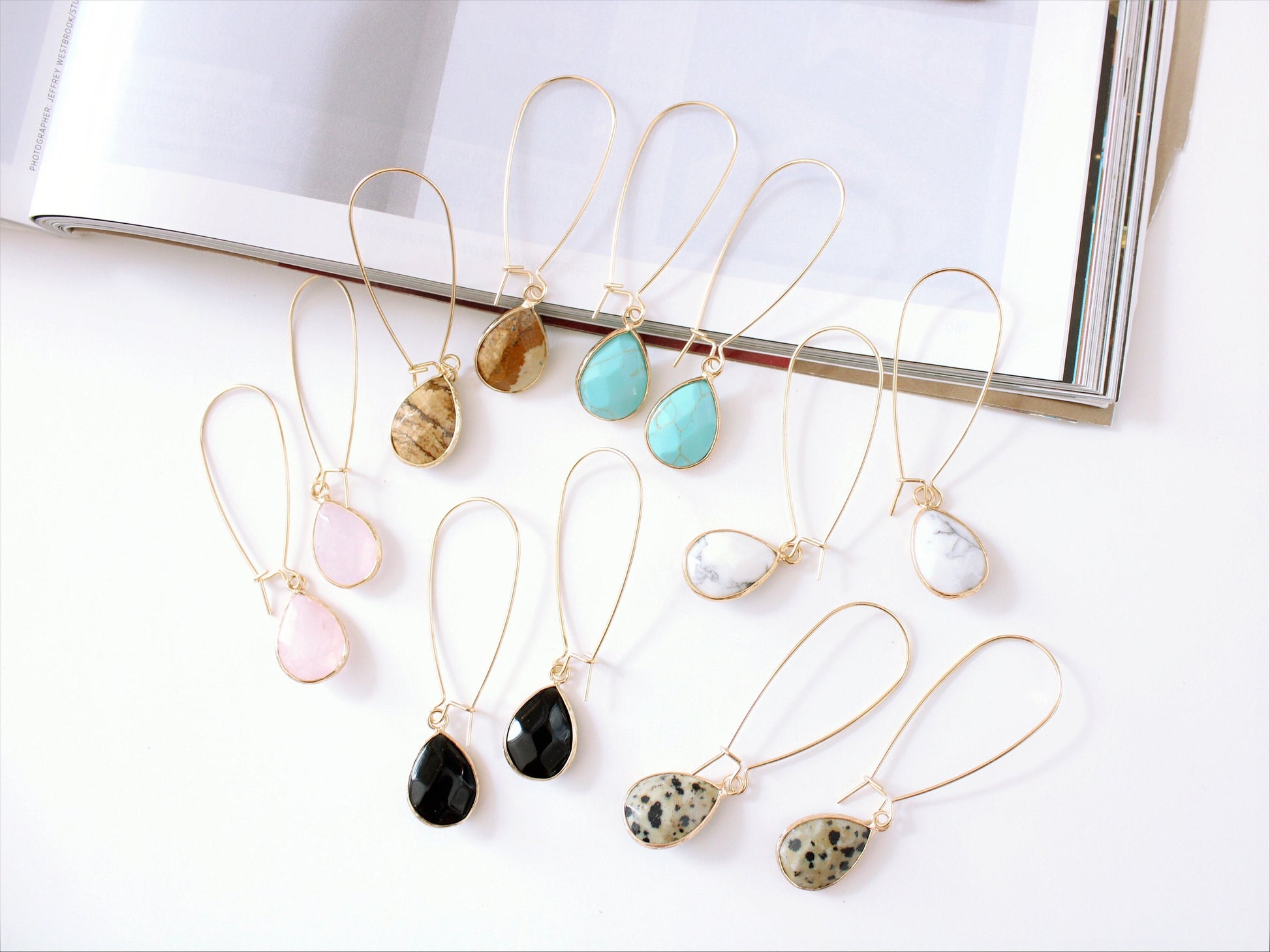 These are gorgeous tear drop stone earrings! They dangle at just the right length to enhance your beauty. Made with genuine stone and gold plated brass ear wire earrings.